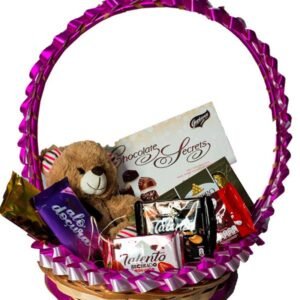 Cesta de Chocolate, Rosas e Pelucia